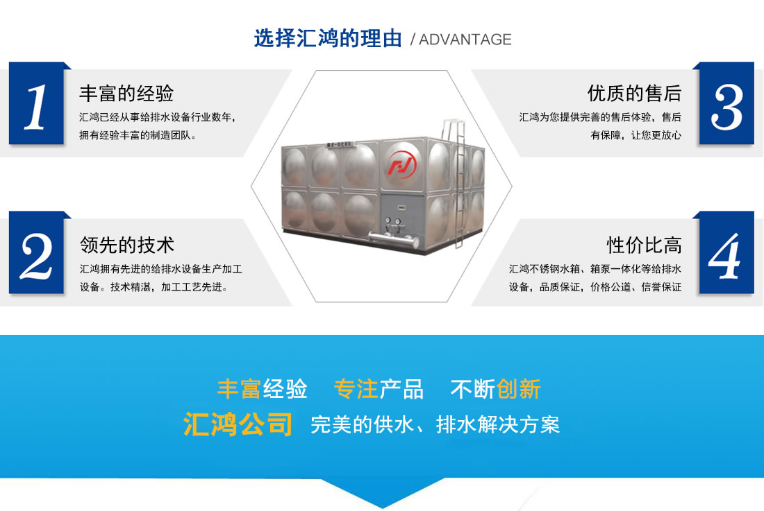 鹽城匯鴻供水設(shè)備有限公司是一家專(zhuān)業(yè)從事供排水設(shè)備系統(tǒng)生產(chǎn)、銷(xiāo)售與工程安裝于一體的專(zhuān)業(yè)企業(yè)。本公司主要生產(chǎn)、銷(xiāo)售、安裝各類(lèi)不銹鋼水箱、箱泵一體化、不銹鋼保溫水箱、組合式水箱、聚氨酯保溫模塊、圓柱形水箱、消防水箱、玻璃鋼水箱、玻璃鋼化糞池等十多個(gè)系列數(shù)百種規(guī)格,產(chǎn)品廣泛應(yīng)用于建筑、環(huán)保、化工、食品、消防等各個(gè)領(lǐng)域。具有優(yōu)質(zhì)高效、節(jié)能環(huán)保、安全可靠、實(shí)用方便等優(yōu)點(diǎn),是二十一世紀(jì)商用和家用生活的首選產(chǎn)品。本公司生產(chǎn)設(shè)備先進(jìn),技術(shù)精湛,各種產(chǎn)品的加工工藝,技術(shù)性能和衛(wèi)生指標(biāo)均符合國(guó)家標(biāo)準(zhǔn),并可根據(jù)用戶(hù)提供的技術(shù)參數(shù)和要求設(shè)計(jì)制造現(xiàn)場(chǎng)加工……【更多詳情】 | |